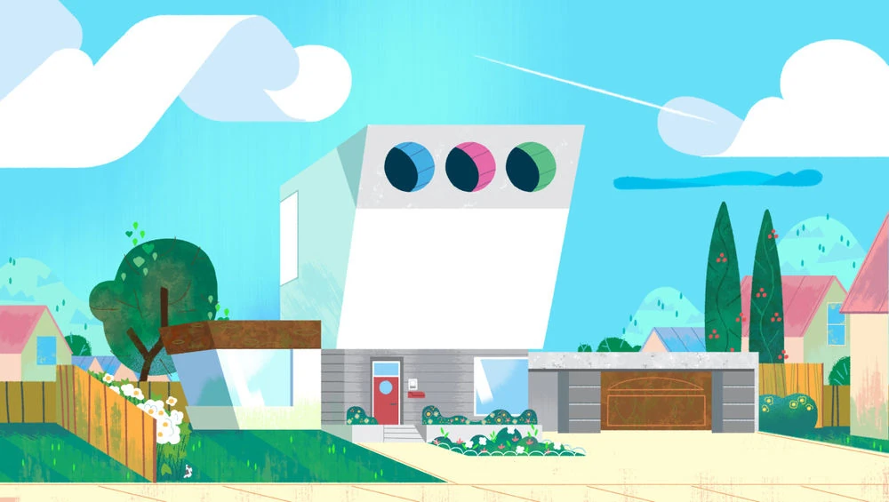 Jest to modernistyczny dom, w którym mieszka Profesor Atomus z trzema córkami: Bójką, Bajką i Brawurką. Znajduje się na przedmieściach Townsville.