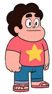 Steven jest niski i pulchny. Jego włosy są kręcone i czarne. Oczy ma w tym samym kolorze. W miejscu gdzie powinien mieć pępek, znajduje się jego klejnot. Zawsze ubiera się w czerwoną koszulkę z żółtą gwiazdką – posiada ją w ilościach hurtowych – niebieskie jeansy oraz różowe sandały.