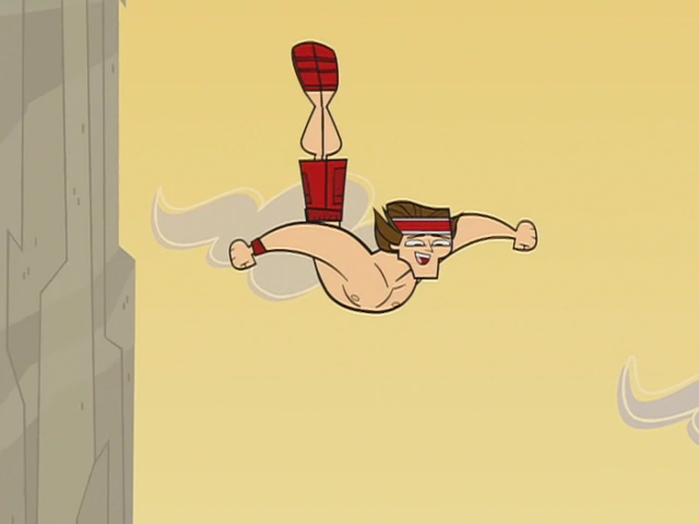 Beth odmawia skoku do wody, ponieważ bardzo się tego boi, więc staje się jedynym "tchórzliwym kurczakiem" w drużynie. Oprócz tego jest wyśmiewana przez resztę drużyny. Swoje skoki zaliczają również Noah i Trent. Okazuje się, że Owen jeszcze nie skakał. Chłopak oznajmia, że nie jest silnym pływakiem i ma strach przed skokiem. Wszyscy są zdenerwowani. Chris zaś zleca mu szybki rozbieg. W końcu Owen przezwycięża strach, z krzykiem skacze z wysokiego klifu do bezpiecznej strefy oraz spada prosto na Trenta i Noah robiąc olbrzymie fale oraz ochlapując innych. Dzięki niemu zespół wygrywa część zadania eliminacyjnego i w nagrodę otrzymuje wózki do przenoszenia skrzyń. Owen wychodzi z wody bez kąpielówek co wprawia resztę w śmiech.
